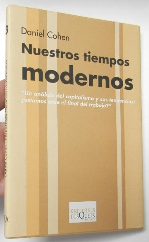 Cohen, Daniel Nuestros tiempos modernos Barcelona, Tusquets, 2001. Rústica con sobrecubierta. 14x21 cm. 153pp. Muy buen estado.
