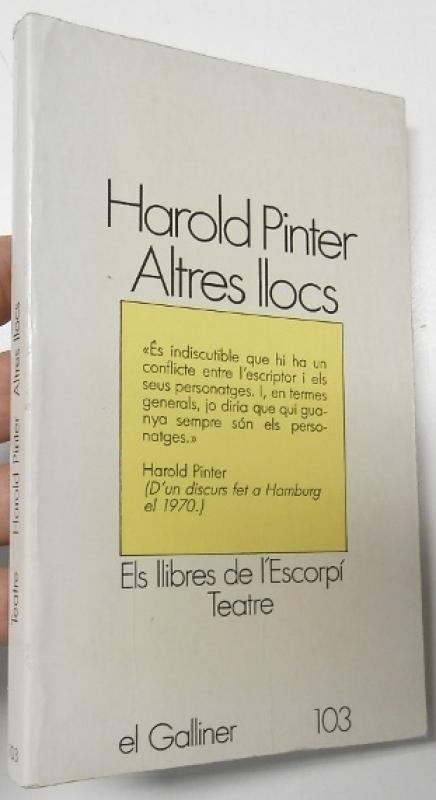 Pinter, Harold Altres llocs Edicions 62, Els llibres de l'Escorpí, 1988, 1ª edición. Rústica, 10,5x17,5 cm. 154pp. Libro en catalán. Buen estado, algo deslucido.