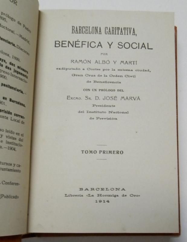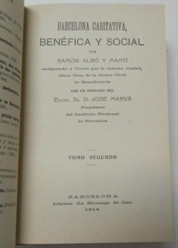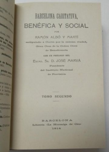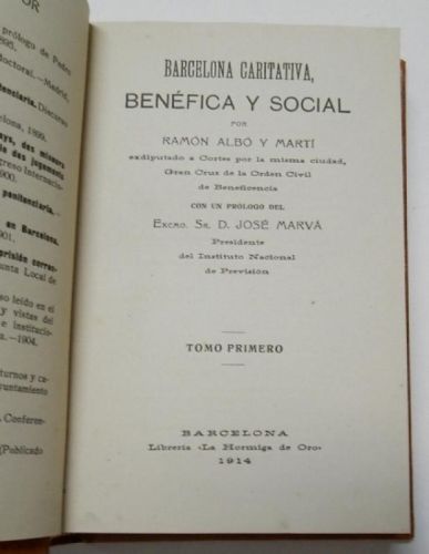 Albó y Martí, Ramón Barcelona caritativa, benéfica y social Barcelona, Librería "La hormiga de oro", 1914. 2 tomos encuaderandos en tapa dura. 12x19,5 cm. 304+362pp. Buen estado.
