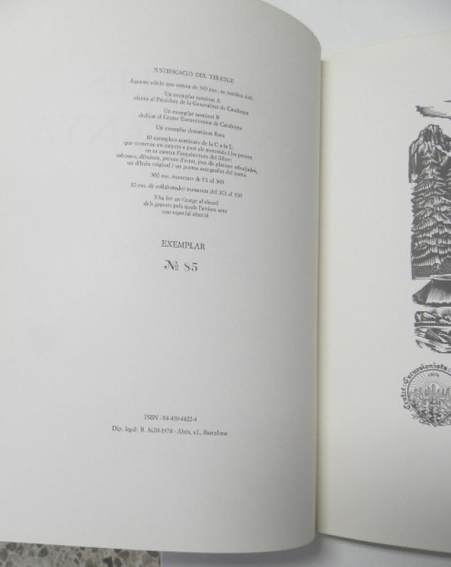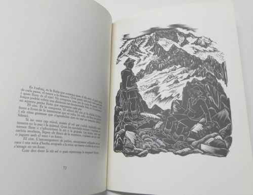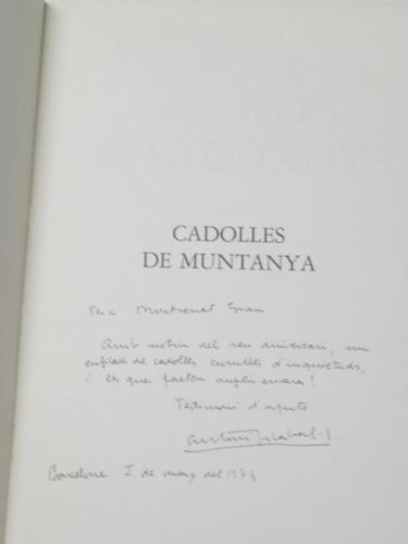 Ribot, Pere Cadolles de muntanya Xilografies d'Antoni Gelabert. Barcelona, 1978. Rústica con solapas. 22,5x30,5 cm. 117pp. Edición numerada de 343 ejemplares. (nº 85). Dedicado por el ilustrador. Libro en catalán. Buen estado.