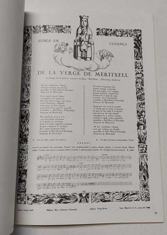 Cants a Nostra Senyora de Meritxell Unió Pro-Turisme de la Parròquia de Canillo, 1988. Rústica. 21x30 cm. 105pp. Libro en catalán. Buen estado.