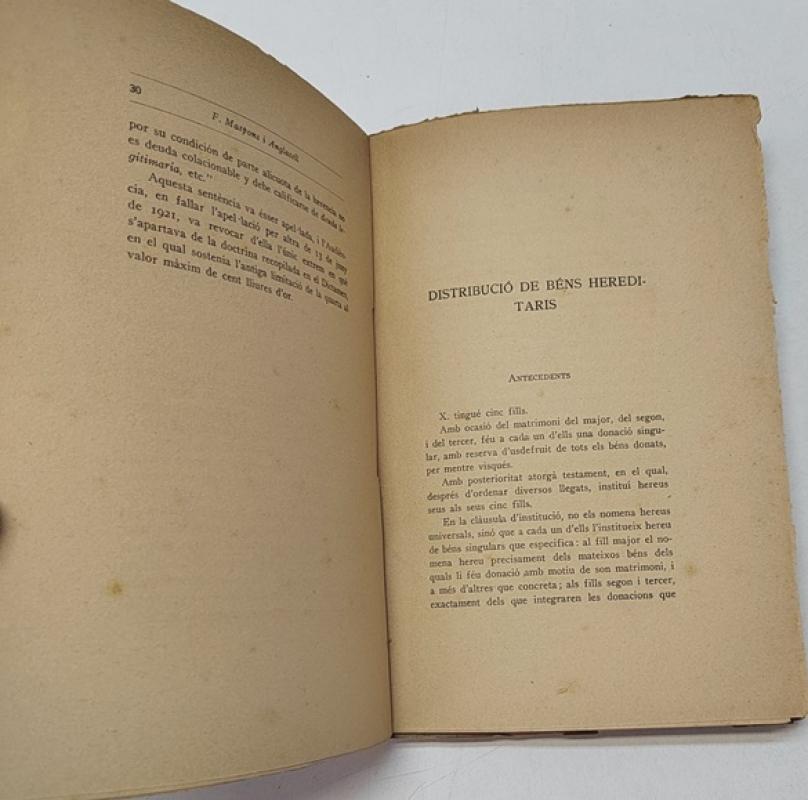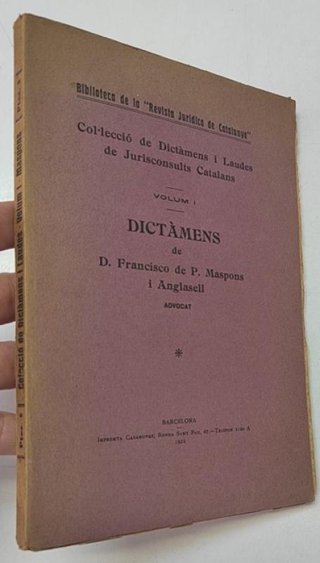 Col·lecció de Dictàmens i Laudes de Jurisconsults Catalans. Volum I. Dictàmens de D. Francisco de P. Maspons i Anglasell Barcelona, Imp. Casanovas, 1922. Rústica. 14x21,5 cm. 101pp. Libro en catalán. Firma de antiguo propietario. Algunas motita de óxido, por lo demás, buen estado.
