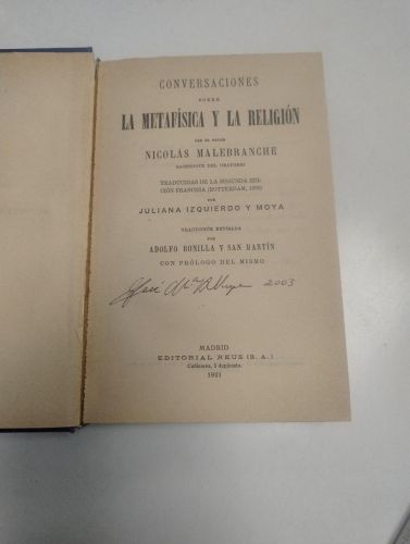 Conversaciones sobre la metafísica y la religión