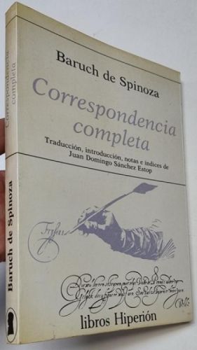 Baruch de Spinoza Correspondencia completa Hiperión, 1988. Rústica con solapas. 16x23,5 cm. 264pp. Firma de antiguo propietario. Unas pocas marcas de bolígrafo en márgenes al principio del libro, por lo demás, buen estado.
