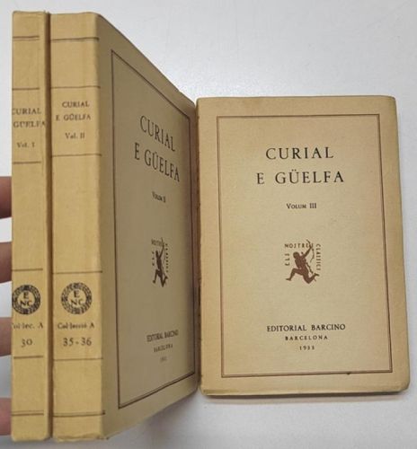 Curial e Güelfa Barcelona, Editorial Barcino, 1930-33. Tres tomos en rústica con solapas. 11,5x17 cm. 187+296+292pp. Libros en catalán. Firma de antiguo propietario. Buen estado.