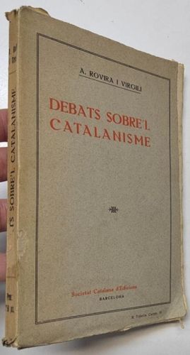 A. Rovira i Virgili Debats sobre'l catalanisme Barcelona, Societat Catalana d'Edicions, 1915. Rústica. 13x19,5 cm. 207pp. Libro en catalán. Firma de antiguo propietario. Motitas de óxido, por lo demás, buen estado.