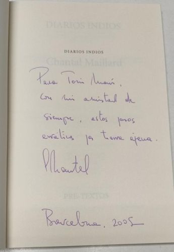 Chantal Maillard Diarios indios Pre-Textos, 2005, 1ª edición. Rústica con solapas. 13x19 cm. 115pp. Dedicado por la autora. Buen estado.