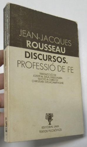 Rousseau, Jean-Jacques Discursos. Professió de fe Editorial Laia, 1983. Rústica con solapas. 11,5x18,5 cm. 292pp. Libro en catalán. Cubiertas deslucidas. Interior bien.