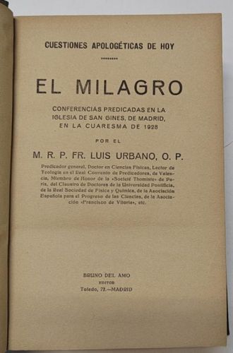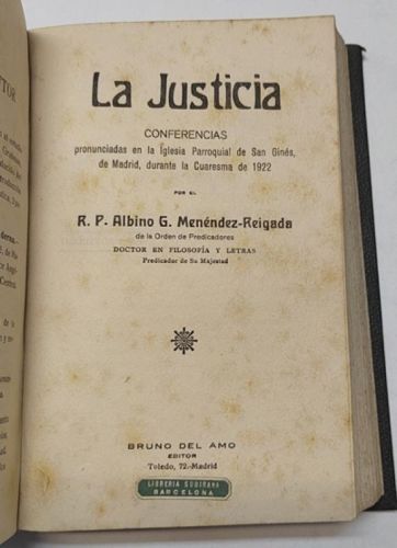 Luis Urbano / Albino G. Menéndez-Reigada El milagro / La justicia Madrid, Bruno del Amo, 1928. Dos obras encuadernadas en tapa dura, 12x18 cm. Buen estado.