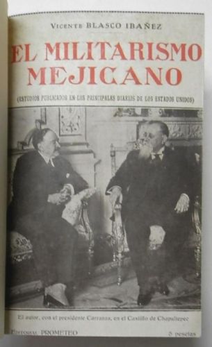 Blasco Ibáñez, Vicente El militarismo mejicano Prometeo, 1920. Encuadernado en tapa dura. 13x18,5 cm. 250pp. Conserva portada original. Firma de antiguo propietario. Buen estado, con alguna motita de óxido.