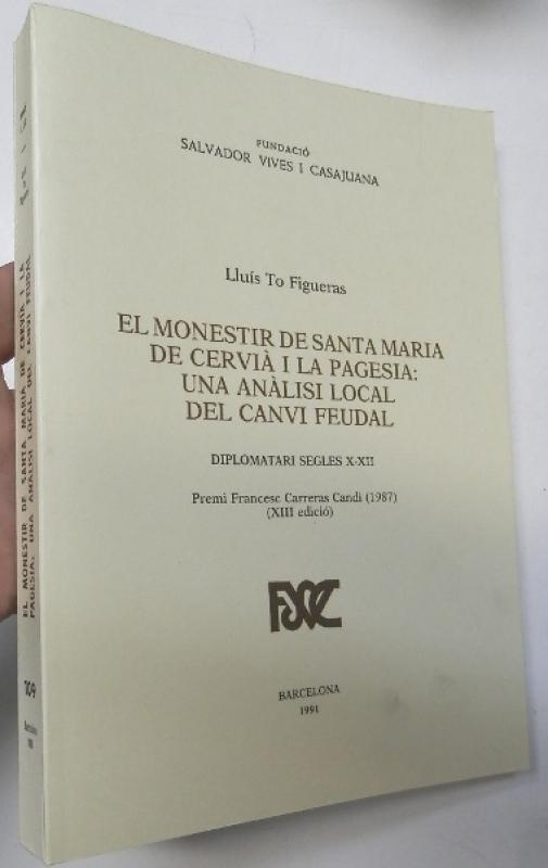 To Figueras, Lluís El monestir de Santa Maria de Cervià i la pagesia: Una anàlisi local del canvi feudal Barcelona, 1991. Rústica. 17x24 cm. 306pp. Libro en catalán. Muy buen estado.
