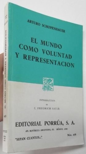 Schopenhauer, Arturo El mundo como voluntad y representación Editorial Porrúa, 1992. Rústica. 14x22 cm., 321pp. Buen estado, algo deslucido.