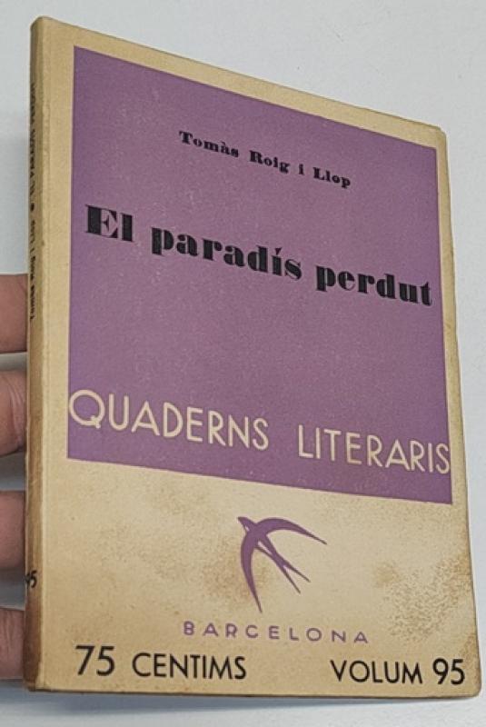 Tomàs Roig i Llop El paradís perdut Barcelona, Quaderns literaris nº 95, 1936. Rústica. 12x17 cm. 74pp+, Libro en catalán. Firma de antiguo propietario. Buen estado, cubierta algo deslucida.