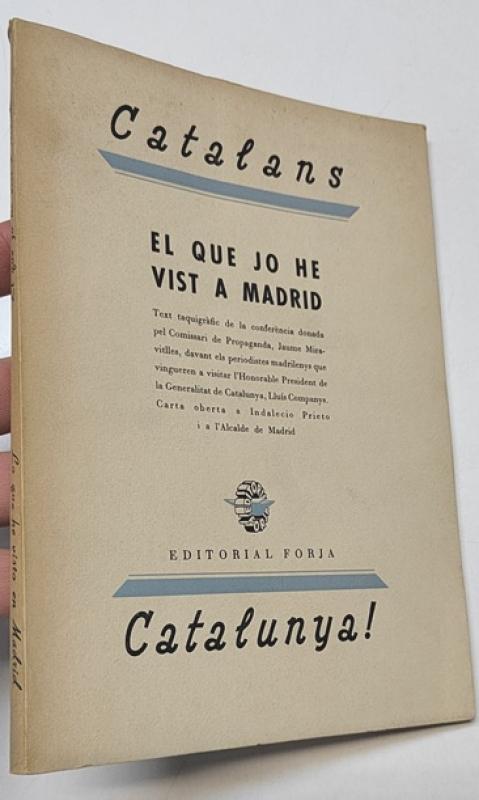 Jaume Miravitlles El que jo he vist a Madrid / Lo que he visto en Madrid Editorial Forja. c. 1937. Rústica. 14x20 cm. 100pp. Bilingüe catalán-castellano. Buen estado, algunas motitas de óxido.