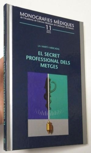 Martí i Mercadal, J.A. El secret professional dels metges Barcelona, Acadèmia de Ciències Mèdiques de Catalunya i de Balears, 2001. Tapa dura. 15x22,5 cm. 175pp. Libro en catalán. Buen estado.