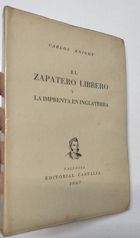 Carlos Knight El zapatero librero y la imprenta en Inglaterra Valencia, Editorial Castalia, 1947, Colección de Opúsculos para bibliófilos. Gallardo. nº III. Edición numerada de 100 ejemplares en papel de hilo superior (nº 45). Rústica. 12,5x18,5 cm. 79pp+. Intonso. Celofán protector. Buen estado.