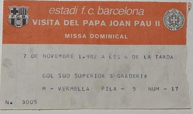 ENTRADA VISITA DEL PAPA JOAN PAU II. ESTADI F.C. BARCELONA