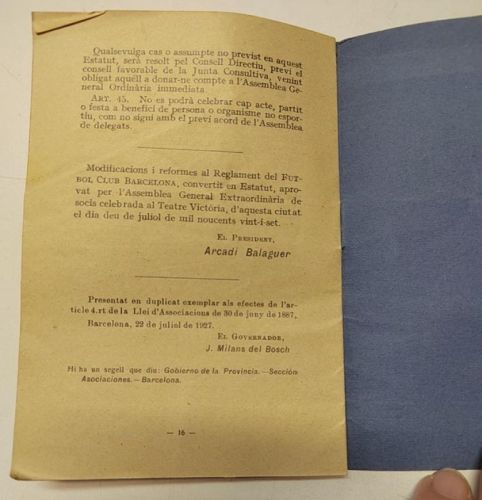 Estatut del Futbol Club Barcelona del año 1927