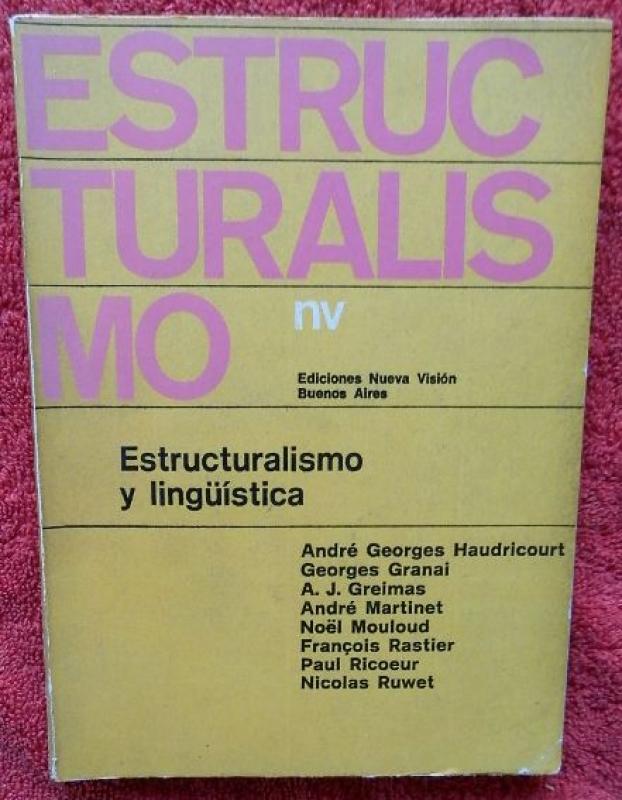 André Georges Haudricourt, Georges Granai, A.J. Greimas, André Martinet, Noël Mouloud, François Rastier, Paul Ricoeur, Nicolas Ruwet Estructuralismo y lingüística Buenos Aires, Ediciones Nueva Visión, 1969. Rústica. 14,5x19,5 cm. 177pp. Cubiertas deslucidas, interior bien.