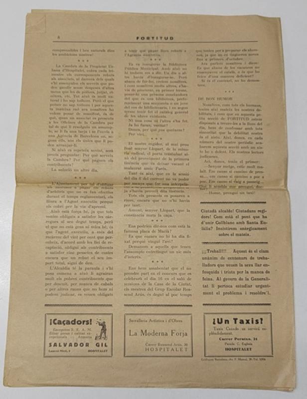 Fortitud número 1 L'Hospitalet, 1932. 24,5x35 cm. 8pp. Buen estado.