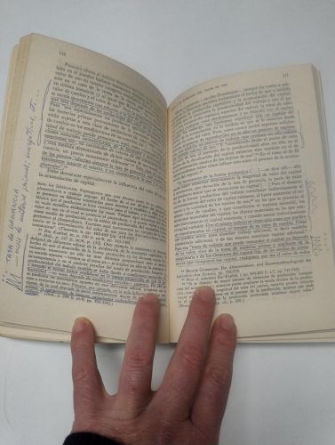 Tapas plastificadas por antiguo propietario. Anotaciones y subrayados a bolígrafo en la primera mitad del libro.