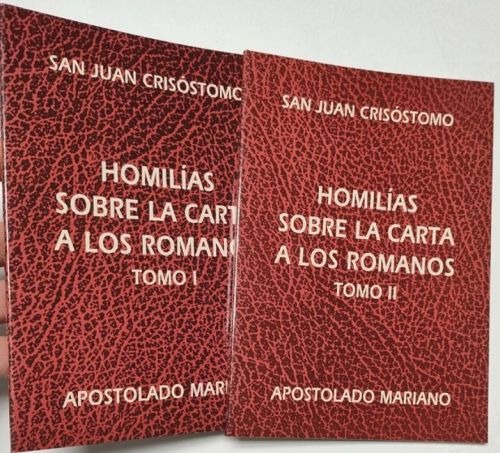 San Juan Crisóstomo Homilías sobre la carta a los romanos (2 tomos) Sevilla, Apostolado Mariano, 1990. Rústica. 14x20 cm. 111+96pp. Unas pocas marcas de bolígrafo en el tomo I, por lo demás, buen estado.
