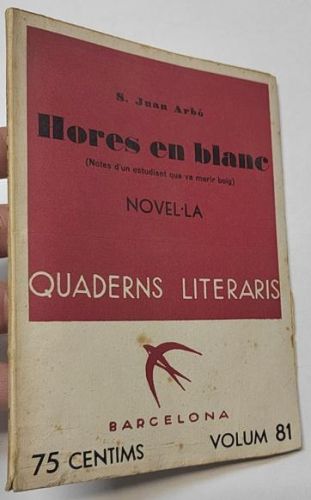 S. Juan Arbó Hores en blanc Barcelona, Quaderns literaris nº 81, 1935. Rústica. 12x17,5 cm. 75pp. Libro en catalán. Firma de antiguo propietario. Buen estado, cubiertas algo delsucidas.