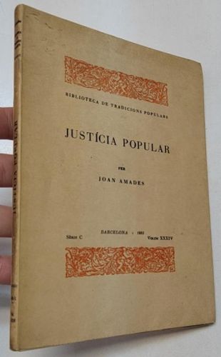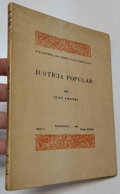 Amades, Joan Justícia popular Biblioteca de Tradicions Populars, 1935. Ejemplar nº XI de una tirada de XV en "paper japó". Rústica con solapas. 14x19,5 cm. 63pp. En catalán. Buen estado.