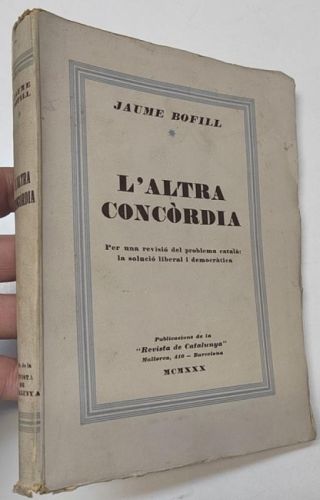 Jaume Bofill L'altra concòrdia Revista de Catalunya, 1930. Rústica. 14x20 cm. 183pp. Firma de antiguo propietario. Libro en catalán. Buen estado, algo deslucido.
