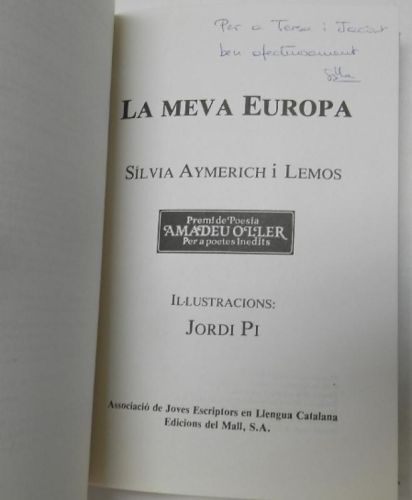 Aymerich i Lemos, Sílvia La meva Europa Edicions del Mall, 1985, 1ª edición. Rústica. 14x21 cm. 51pp. Libro en catalán. Dedicado por la autora. Buen estado.