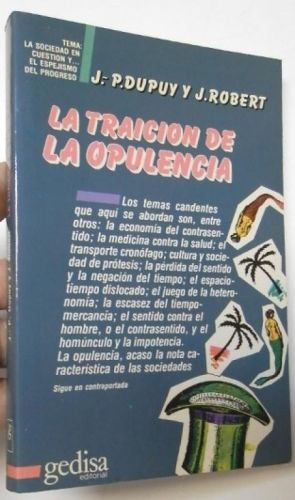 J.P. Dupuy, J. Robert La traición de la opulencia Gedisa, 1979, 1ª edición. Rústica. 12,5x19 cm. 276pp. Muy buen estado.