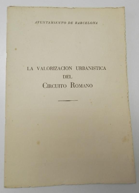 La valorización urbanística del circuito romano Ayuntamiento de Barcelona, 1964. Rústica. 22x32 cm. 32pp. Cubiertas algo sucias, interior muy bien.