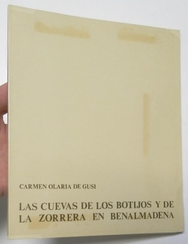 Carmen Olaria de Gusi Las cuevas de Los Botijos y de La Zorrera en Benalmádena Ayto. de Benalmádena, 1977. Rústica. 18x21,5 cm. 83pp. Forro plástico de antiguo propietario. Buen estado.