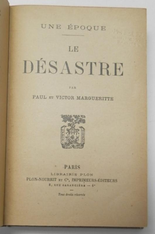 Paul et Victor Margueritte Le désastre Paris, Librairie Plon, sin fecha. Tapa dura. 12x18 cm. 507pp. Libro en francés. Buen estado.