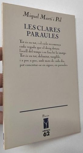 Martí i Pol, Miquel Les clares paraules Edicions 62, L'escorpí, 1992. Rústica. 12x20 cm. 69pp+. Libro en catalán. Buen estado.