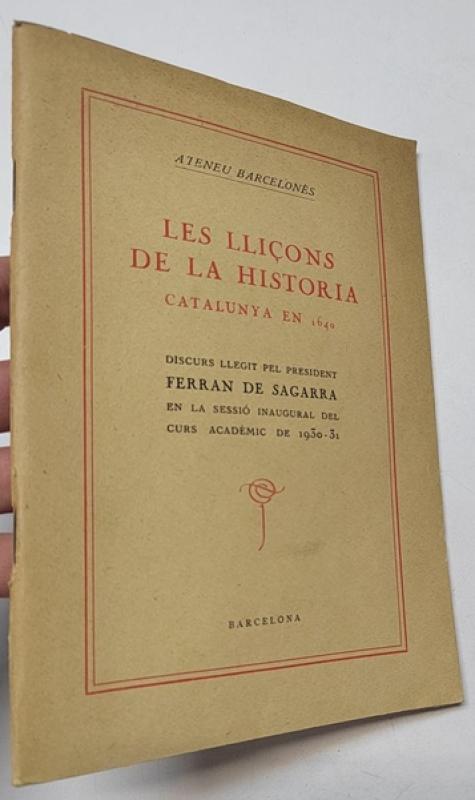 Ferran de Sagarra Les lliçons de la història. Catalunya en 1640 Ateneu barcelonès, c. 1930. Rústica. 15x22 cm. 70pp. Libro en catalán. Buen estado.