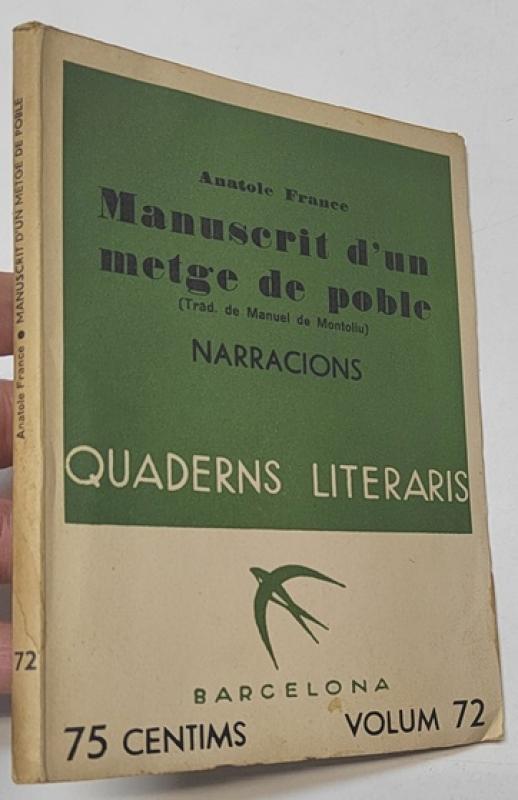 Anatole France Manuscrit d'un metge de poble Barcelona, Quaderns literaris volum 72, 1935. Rústica. 12x17,5 cm. 74pp. Libro en catalán. Firma de antiguo propietario. Buen estado.