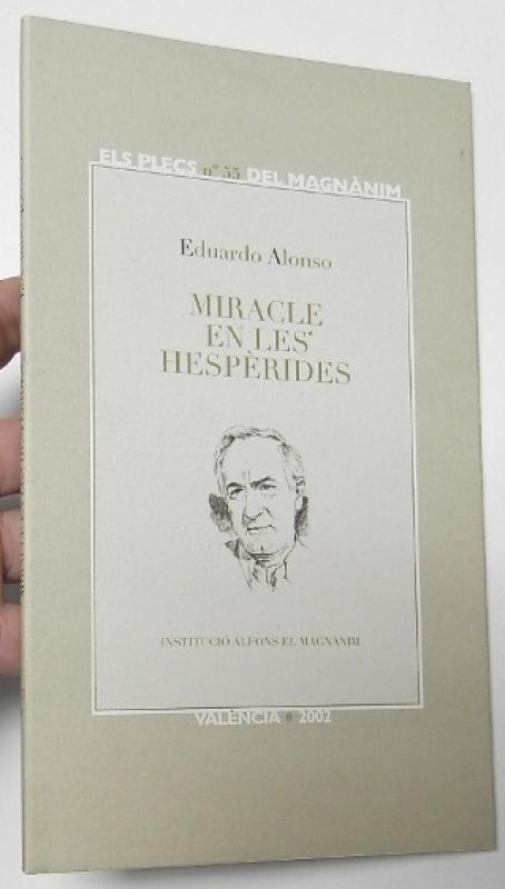 Alonso, Eduardo Miracle en les hespèrides València, Institutció Alfons el Magnànim. Els plecs del magnànim, 2002. Rústica con sobrecubierta. 13,5x23,5 cm. 27pp. Intonso. Libro en catalán. Muy buen estado.