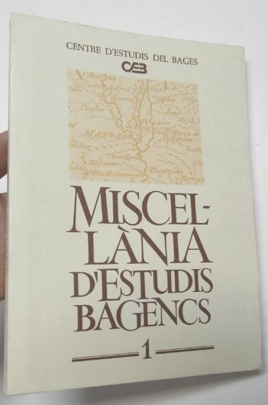 Miscel·lània d'estudis bagencs, 1 Centre d'estuids del Bages, 1981. Rústica. 17x24 cm. 225pp. Libro en catalán. Muy buen estado.