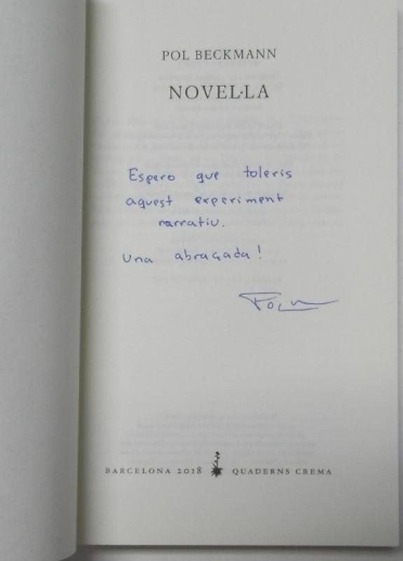 Beckmann, Pol Novel·la Quaderns Crema, 2018, 1ª edición. Rústica con solapas. 13,5x21 cm. 160pp. Libro en catalán. Dedicado por el autor. Muy buen estado.