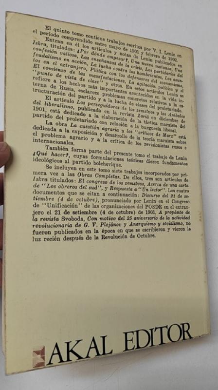 Lenin Obras completas. Tomo V Akal editor, 1976. Rústica. 13x20,5 cm. 565pp. Buen estado.