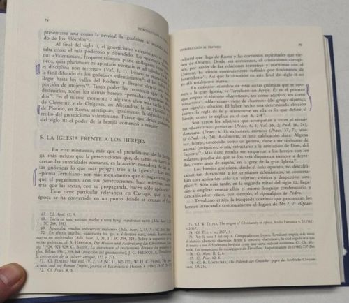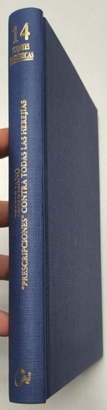 Tertuliano "Prescripciones" contra todas las herejías Madrid, Editorial Ciudad Nueva, 2001. Fuentes patrísticas, 14. Tapa dura, sin sobrecubierta. 15,5x23,5 cm. 329pp. Bilingüe. Algo deslucido. Marcas con bolígrafo en 6 páginas, por lo demás, buen estado.