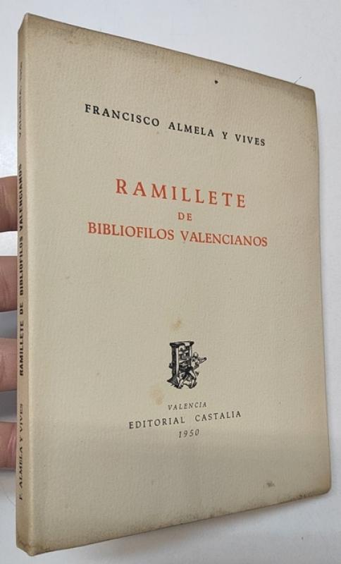 Francisco Almela y Vives Ramillete de bibliófilos valencianos Valencia, Editorial Castalia, 1950, Colección de Opúsculos para bibliófilos. Ibarra. nº IX. Edición numerada de 150 ejemplares en papel de hilo superior (nº 125). Rústica. 12,5x18,5 cm. 110pp+. Intonso. Buen estado.