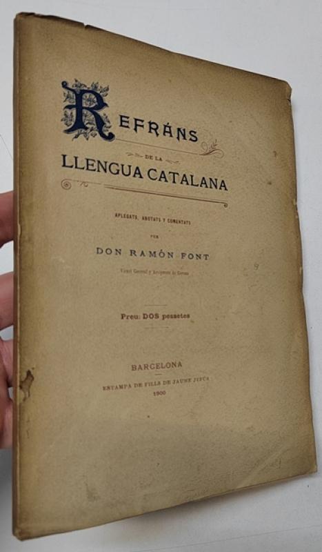 Ramon Tort Refrans de la llengua catalana Barcelona, Estampade fills de Jaume Jepús, 1900. Rústica. 14x21 cm. 147pp. Libro en catalán. Cubiertas deslucidas, interior bien.