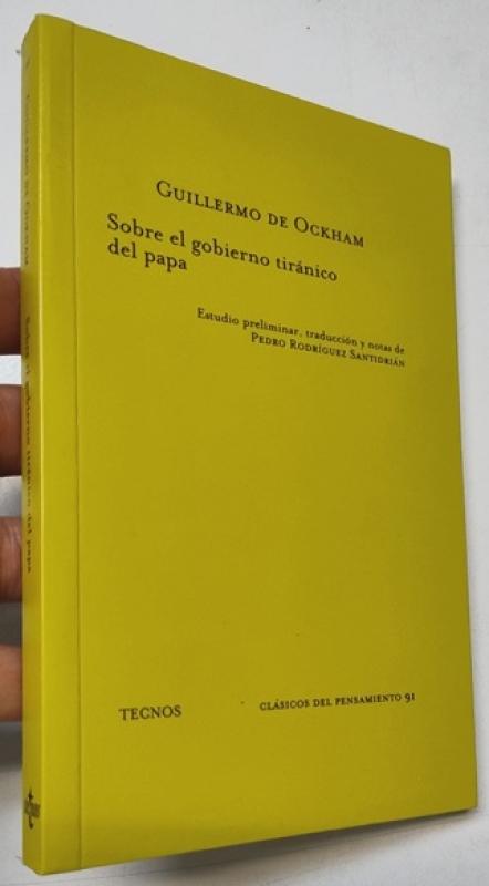 Guillermo de Ockham Sobre el gobierno tiránico del papa Tecnos, 2000. Rústica con solapas. 11x18 cm. 221pp. Buen estado.