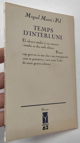 Martí i Pol, Miquel Temps d'interluni Edicions 62, L'escorpí, 1990, 1ª edición. Rústica. 10,5x17,5 cm. 68pp+. Libro en catalán. Buen estado.