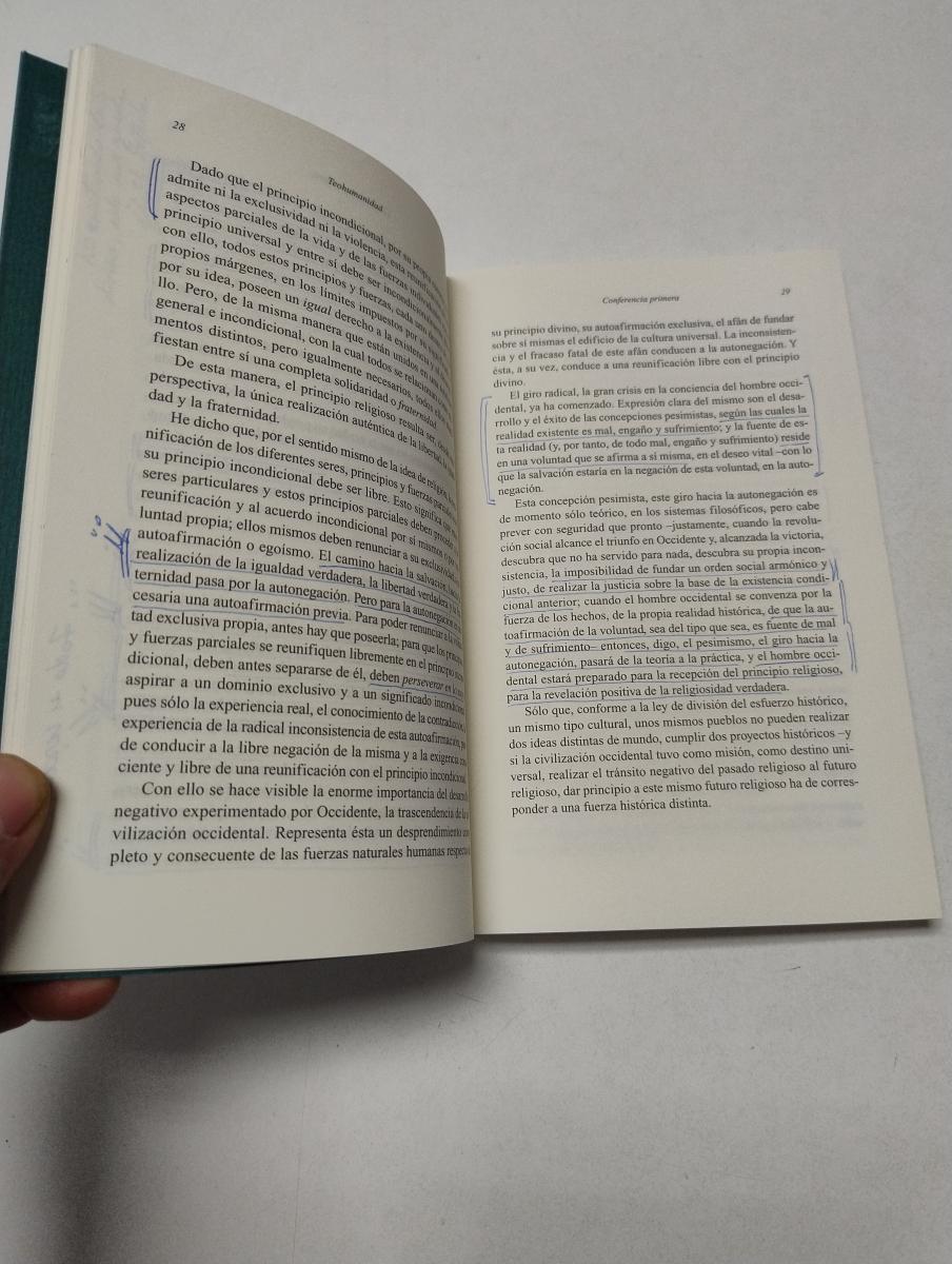 Anotaciones y subrayados a bolígrafo en la primera mitad del libro