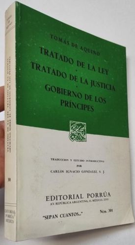 Tomás de Aquino Tratado de la ley / Tratado de la justicia / Gobierno de los príncipes México, Editorial Porrúa, 2000. Rústica. 14x22 cm. 401pp. Buen estado, cubiertas algo deslucidas.