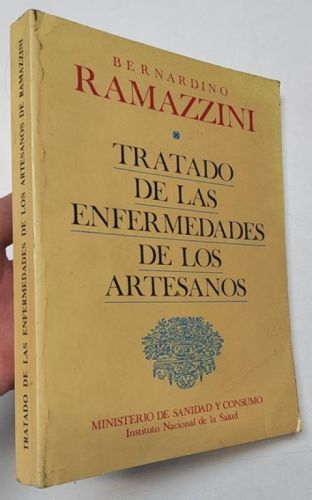 Bernardino Ramazzini Tratado de las enfermedades de los artesanos Madrid, Ministerio de Sanidad y Consumo, 1983. Rústica. 17x24 cm. 391pp. Firma de antiguo propietario. Buen estado, cubiertas algo deslucidas.