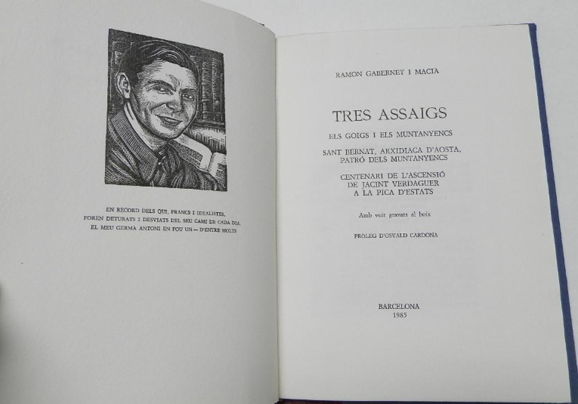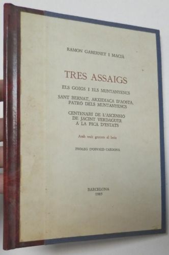 Gabernet i Macià, Ramon Tres assaigs Barcelona, 1985. Encuadernado en tapa dura. 16x22,5 cm. 57pp. Dedicado por el autor. Buen estado.